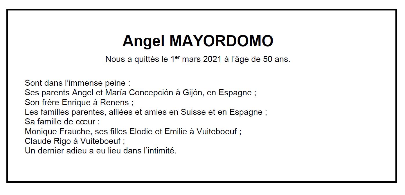 Angel MAYORDOMO 01 mar. 2021 Avis mortuaire PFG Télecharger PDF Partager sur: Galerie PreviousNext PreviousNext
