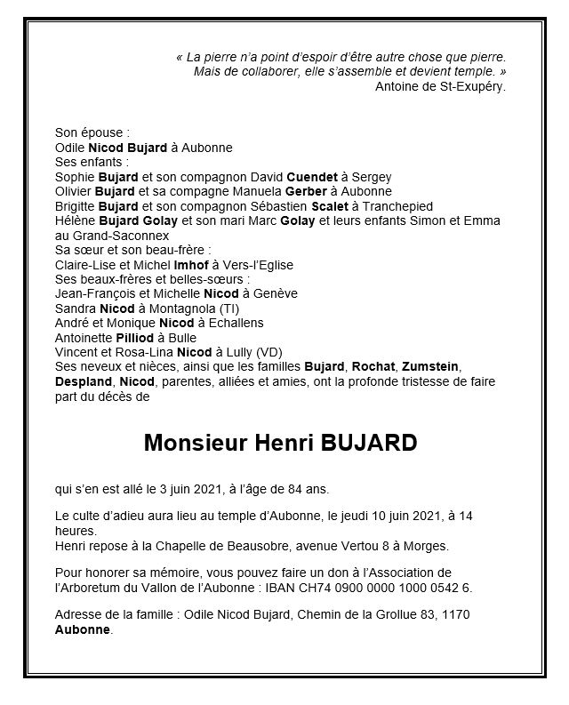 Henri BUJARD 11 juin. 1937 - 10 juin. 2021 Avis mortuaire PFG Télecharger PDF Partager sur: Galerie PreviousNext PreviousNext