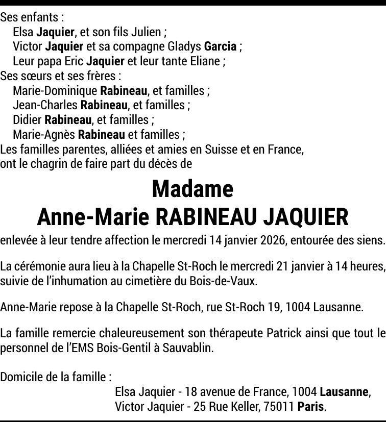 Madame Anne-Marie RABINEAU-JAQUIER