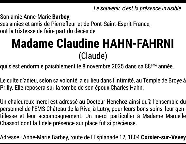 Madame Claudine HAHN-FAHRNI