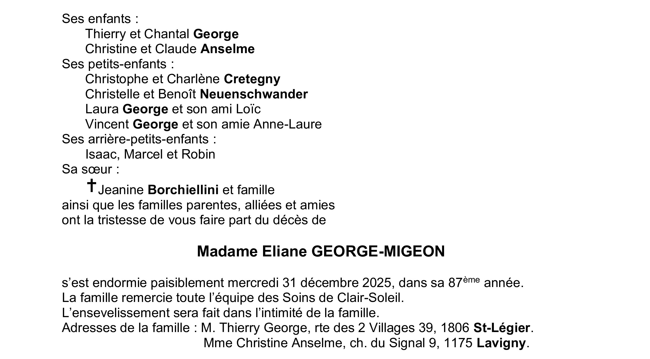 Madame Eliane GEORGE