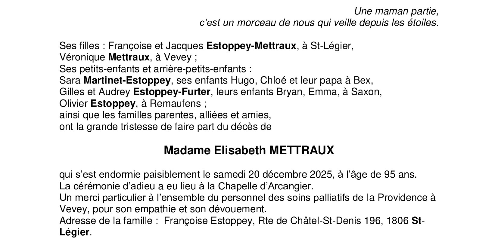 Madame Elisabeth METTRAUX