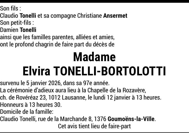 Madame Elvira TONELLI-BORTOLOTTI