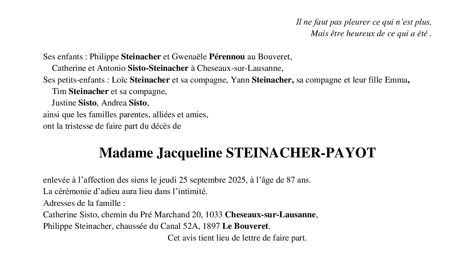 Avis mortuaires / Remerciements