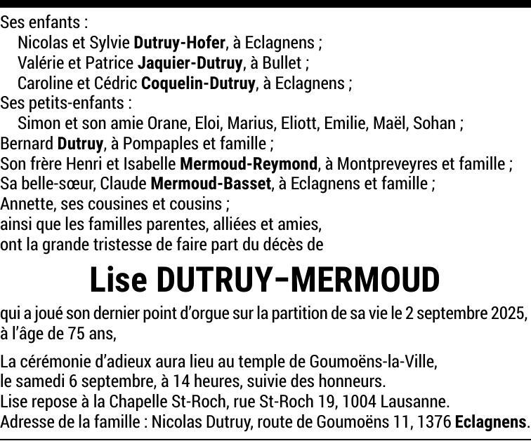 Madame Lise DUTRUY-MERMOUD