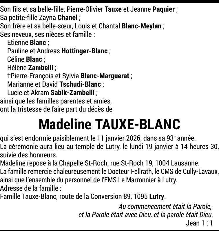 Madame Madeline TAUXE-BLANC