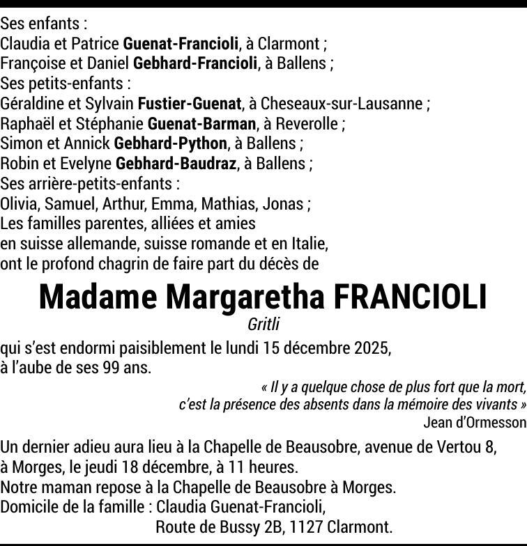 Madame Margaretha FRANCIOLI