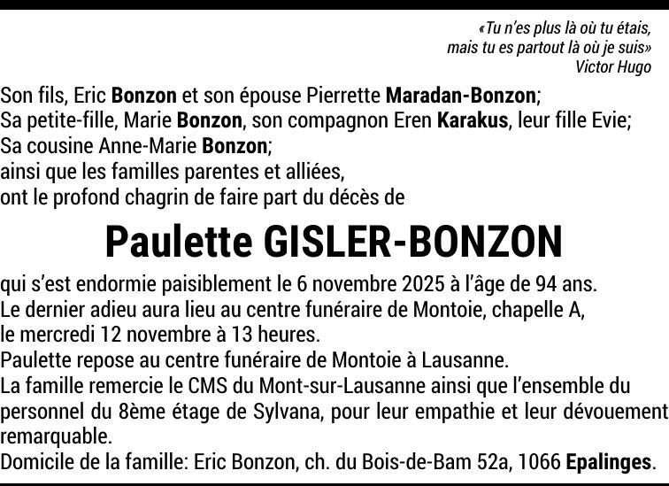 Madame Paulette GISLER-BONZON