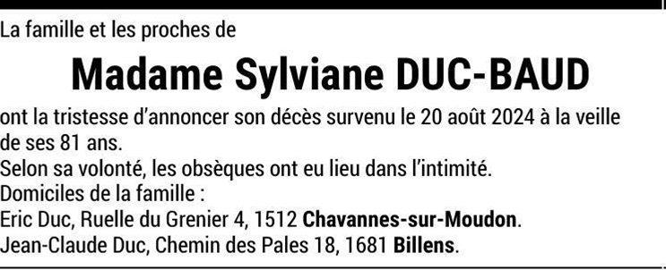Madame Sylviane DUC-BAUD