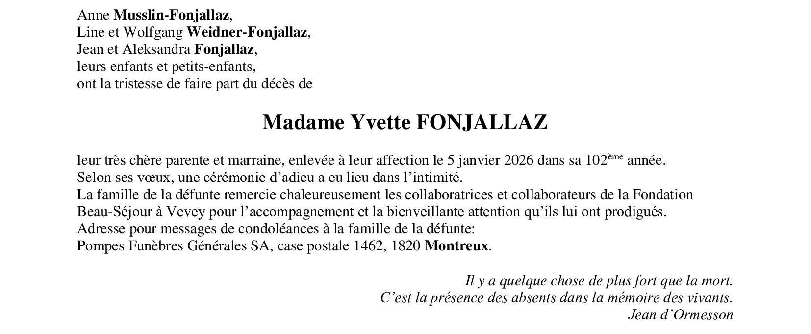 Avis mortuaire PFG