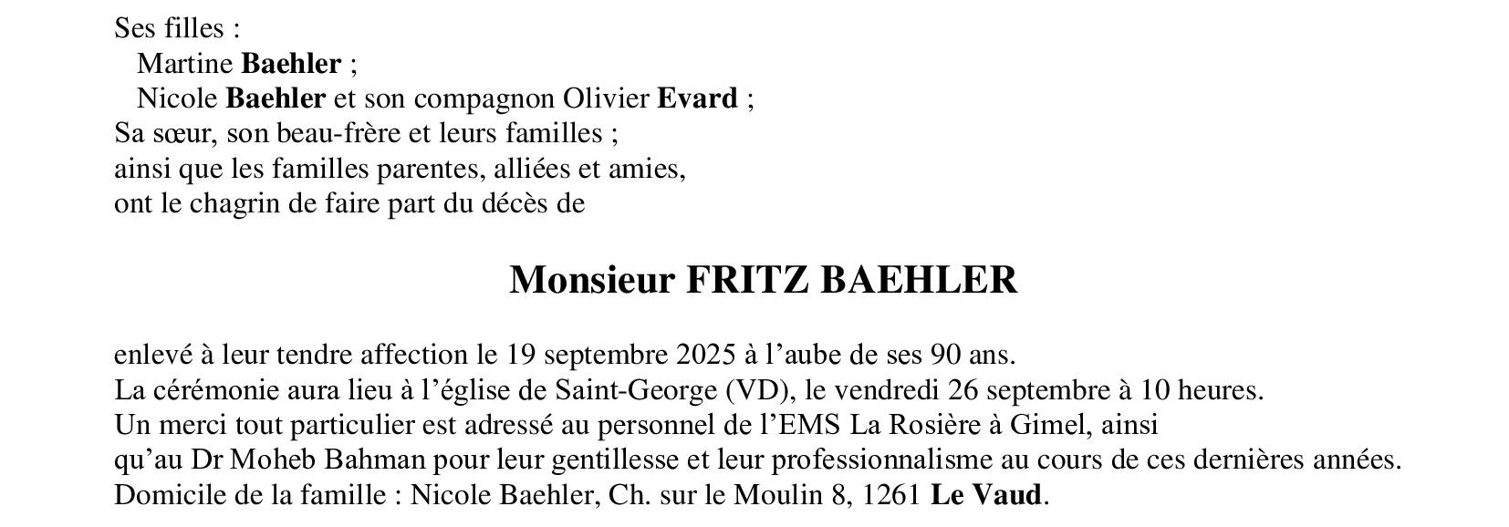 Monsieur Fritz BAEHLER
