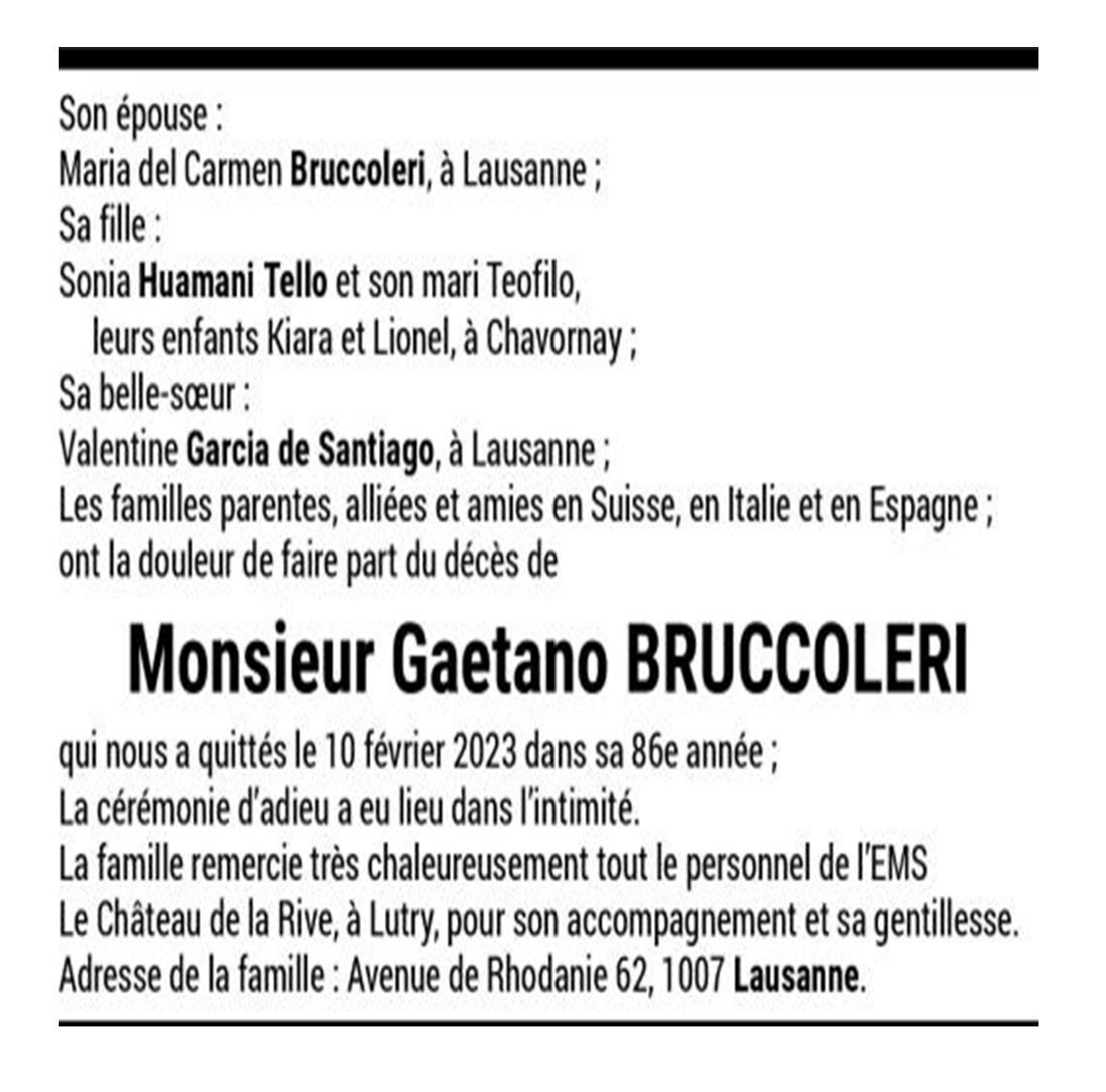 Monsieur Gaetano BRUCCOLERI 19 mar. 1937 - 10 fév. 2023 Avis mortuaire PFG Télecharger PDF Partager sur: Galerie PreviousNext PreviousNext