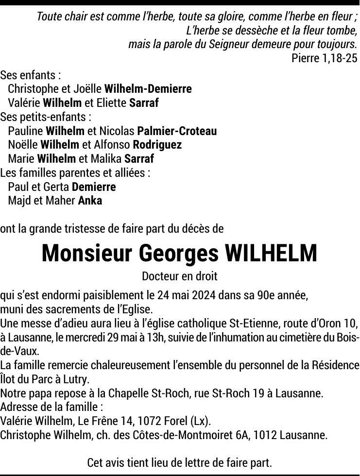 Monsieur Georges WILHELM 19 avr. 1935 - 24 mai. 2024 Avis mortuaire PFG Partager sur: Galerie PreviousNext PreviousNext