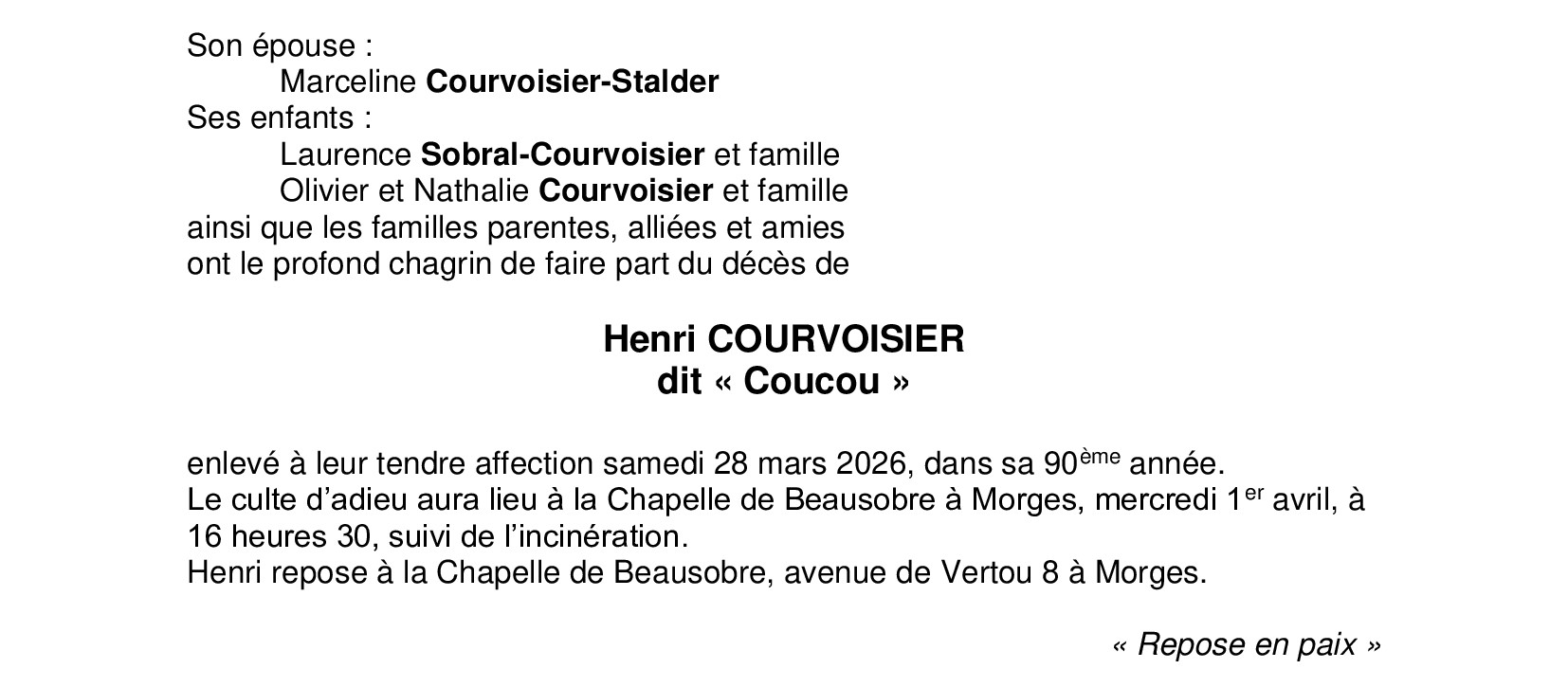 Monsieur Henri COURVOISIER