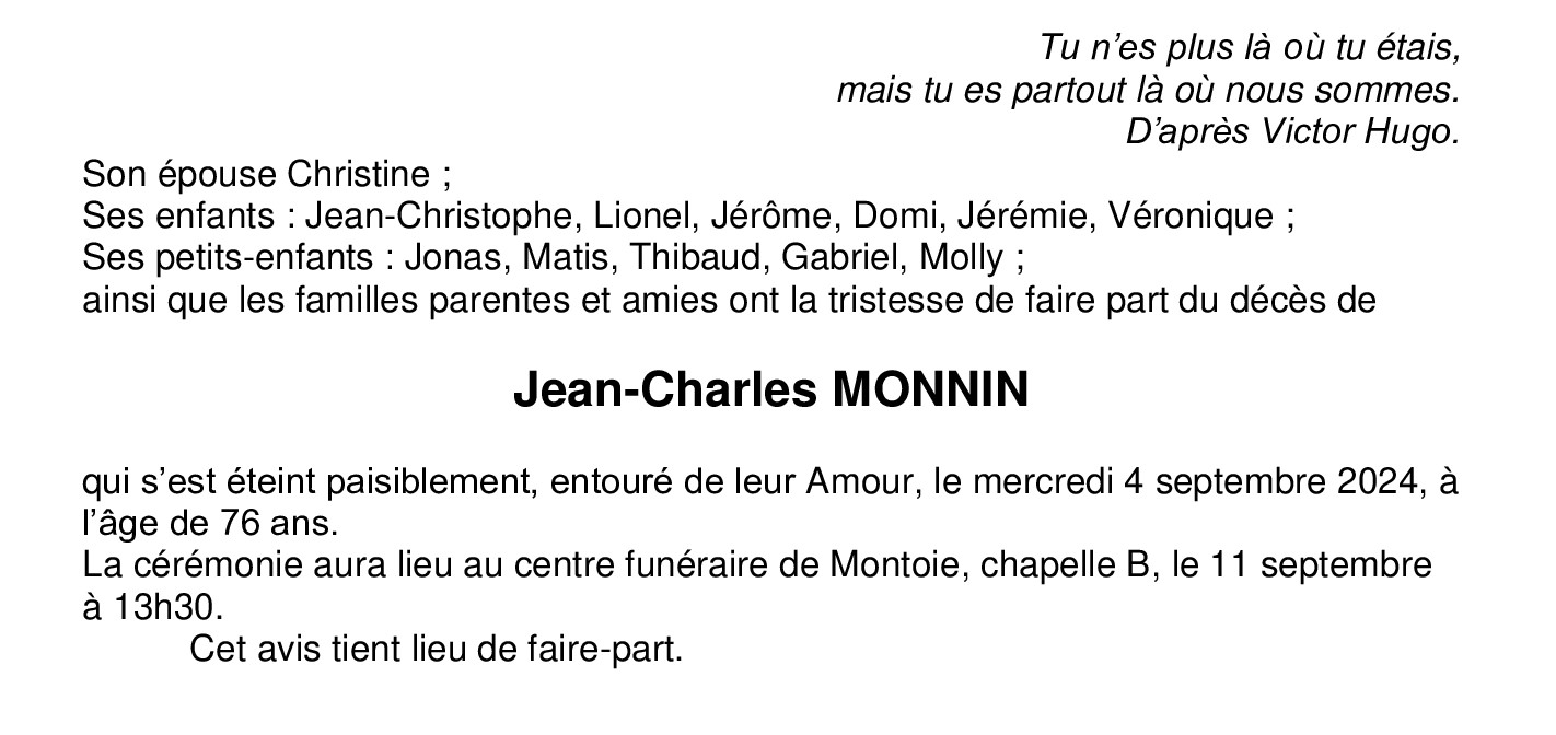 Monsieur Jean-Charles MONNIN