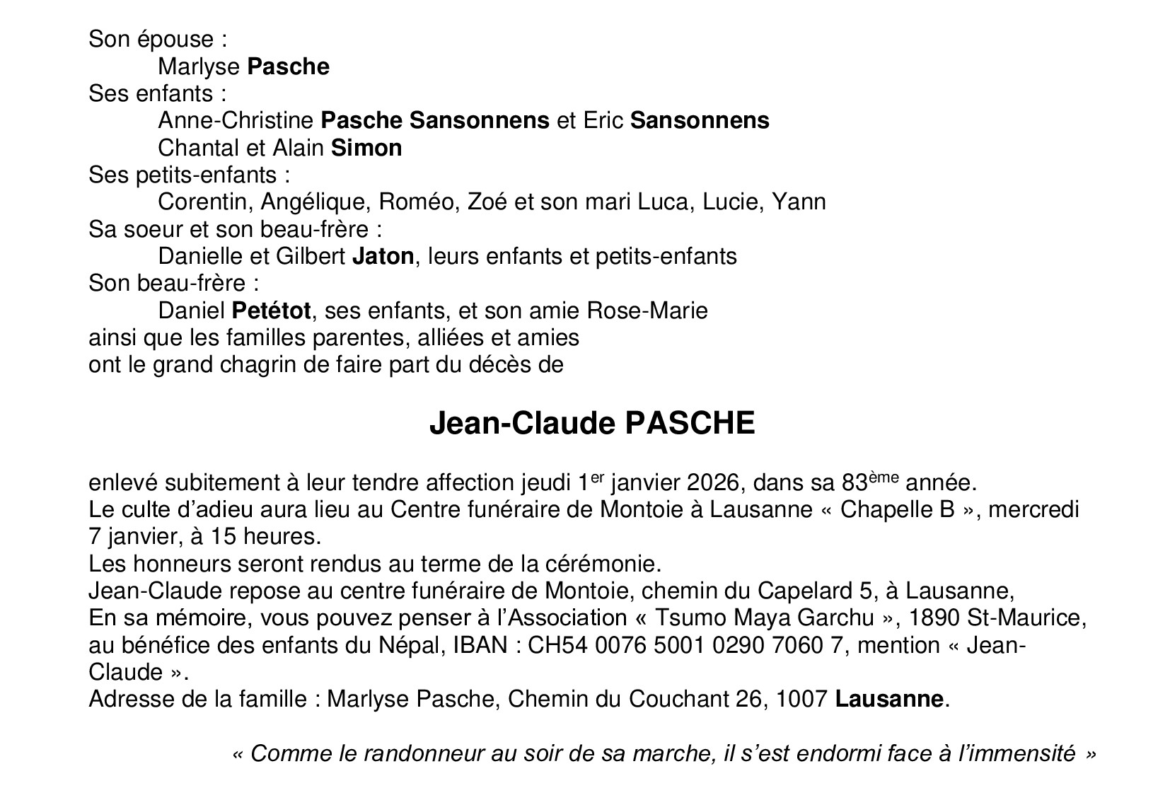 Monsieur Jean-Claude PASCHE