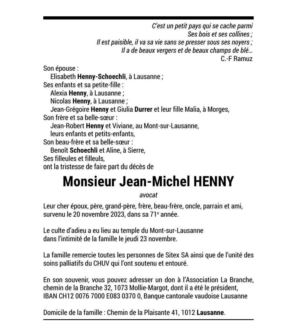 Monsieur Jean-Michel HENNY avocat 27 mar. 1952 - 20 nov. 2023 Avis mortuaire PFG Télecharger PDF Partager sur: Galerie PreviousNext PreviousNext
