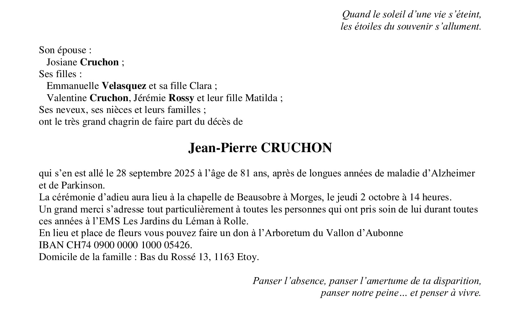 Avis mortuaires / Remerciements