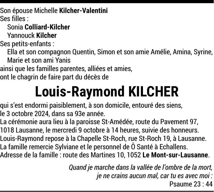 Monsieur Louis-Raymond KILCHER 07 avr. 1932 - 09 oct. 2024 Avis mortuaire PFG Partager sur: Galerie PreviousNext PreviousNext