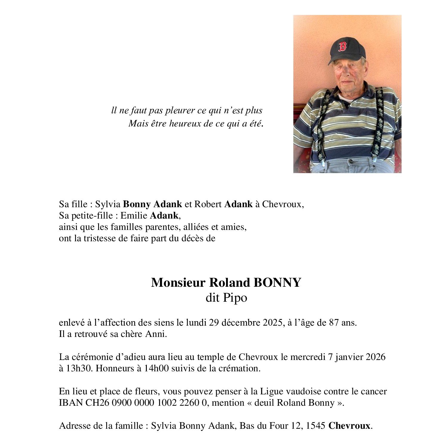 Avis mortuaires / Remerciements