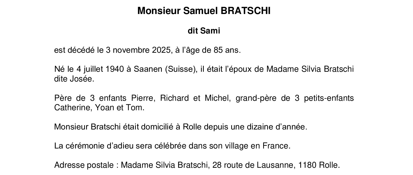 Monsieur Samuel BRATSCHI