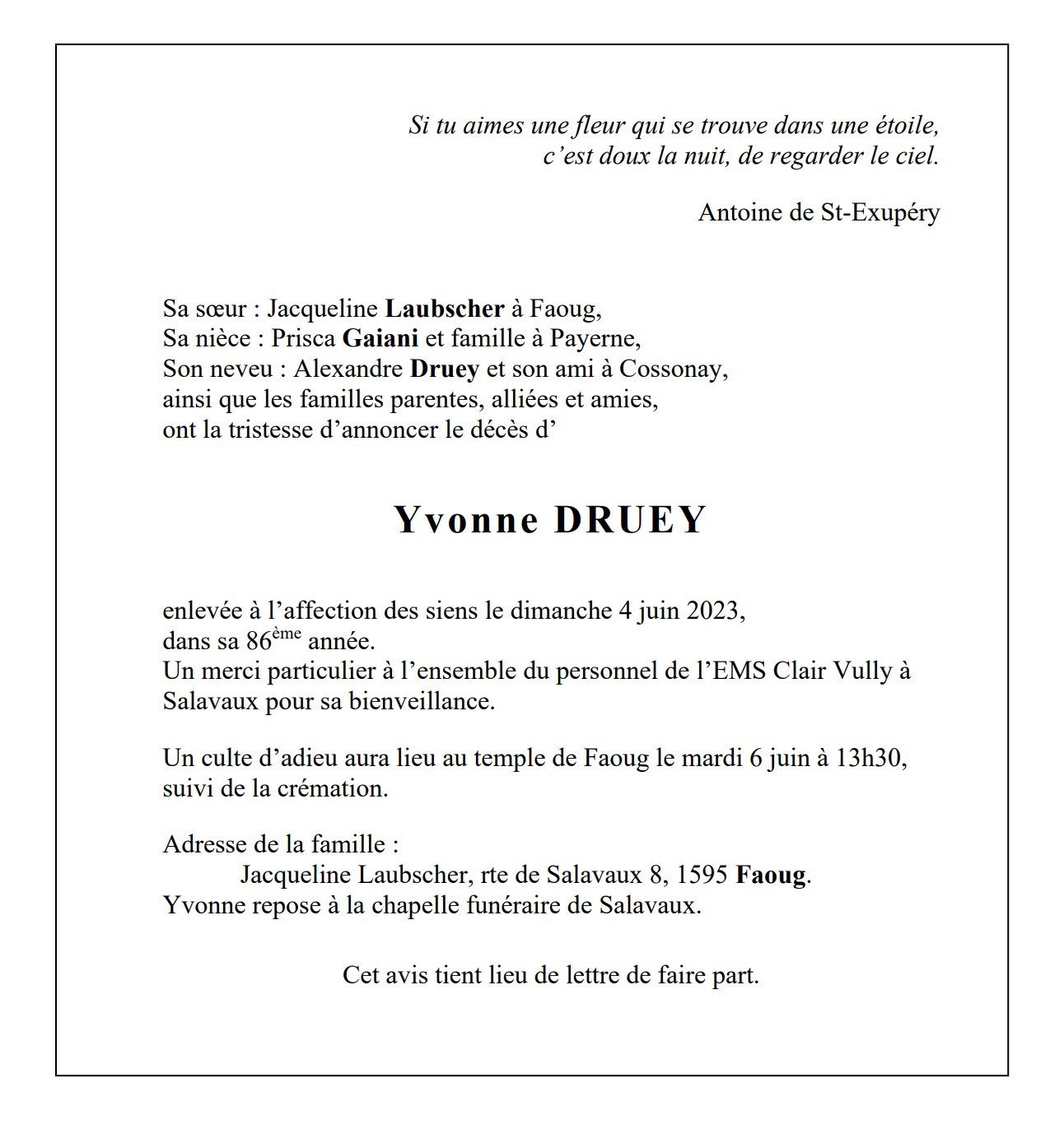 Avis mortuaire PFG